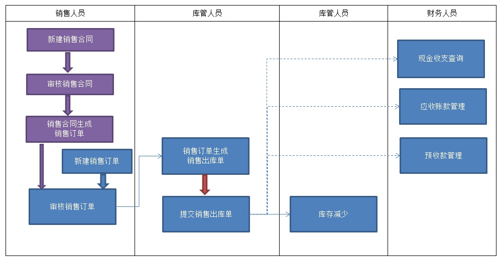 销售业务包括:销售订单、销售出库、销售退货以及伴随着这些业务的资金管理。